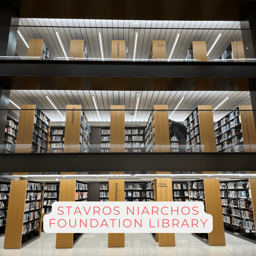 Stavros Niarchos Foundation Library: After leaving the New York Public Library – Stephen A. Schwarzman Building, and in desperate need of actual books, we wandered across the street to the Stavros Niarchos Foundation Library, another branch of the New York Public Library. There I found exactly what I was searching for: floors and floors and floors of books ready for viewing. With a modern feel, I couldn’t help but be struck by the juxtaposition between this sleek structure and the historical monument I just came from. My friend and I pondered what happened to the dynamic of a cozy, warm library, that gave way to the efficiencies of the modern libraries we have seen. My only complaint this visit was the terrace being closed, but who can be blamed when it was cold and snowy outside?
